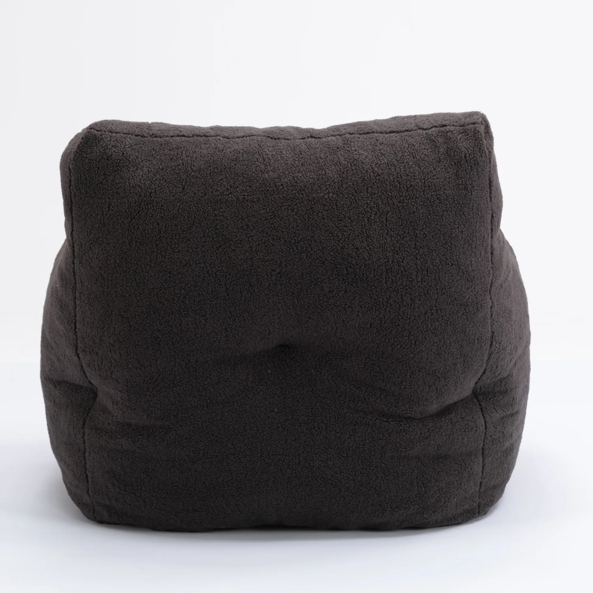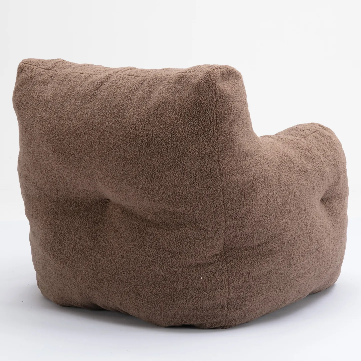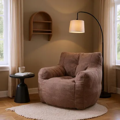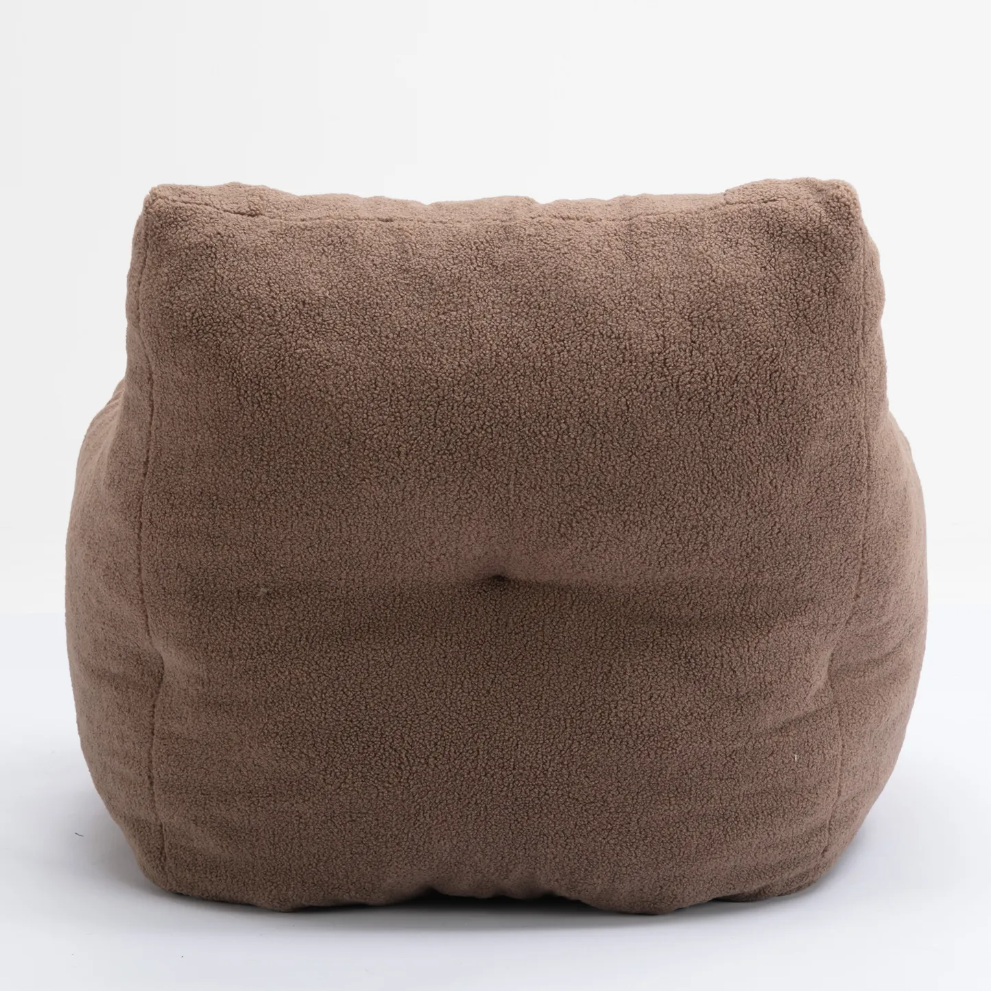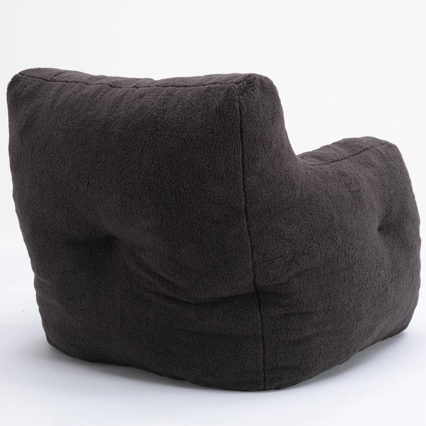 Soft foam-filled bean bag chair with plush teddy fabric and ergonomic tufted design. Perfect for cozy lounging in any modern space.