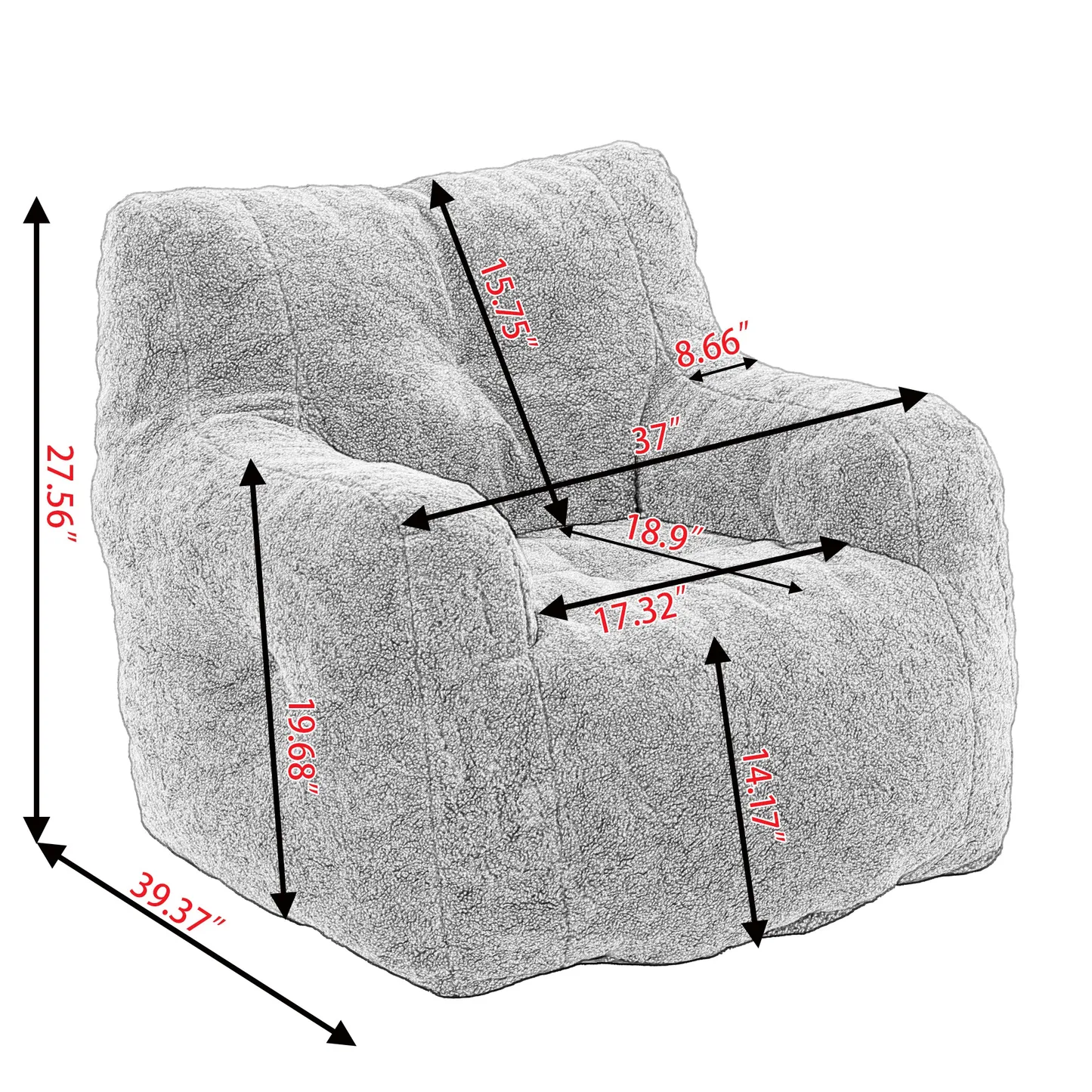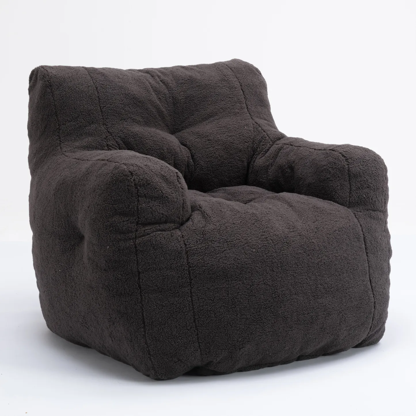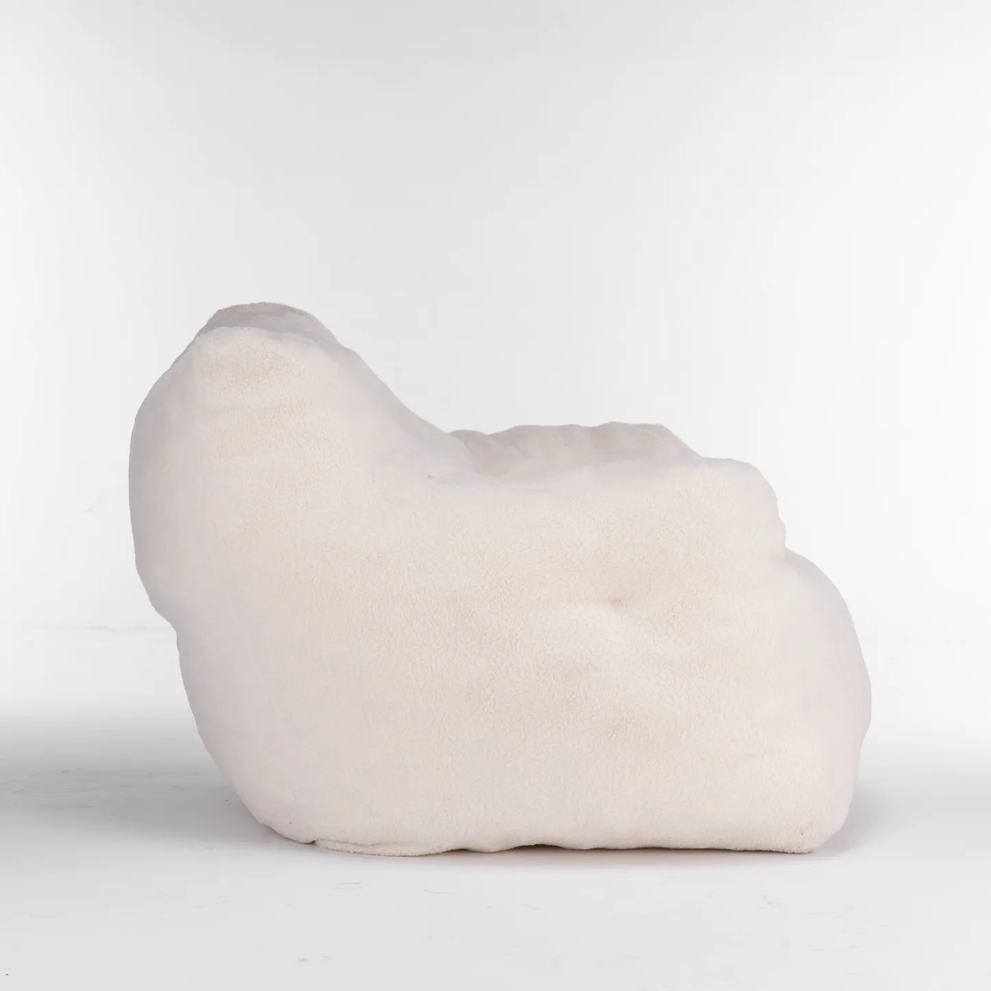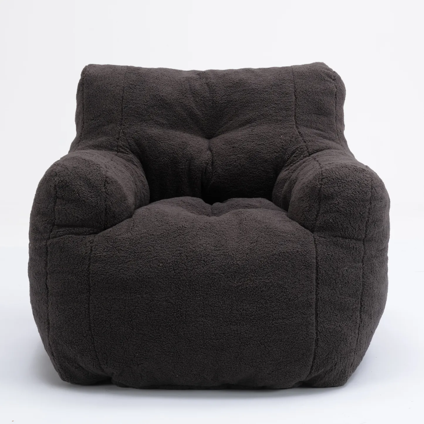 Soft foam-filled bean bag chair with plush teddy fabric and ergonomic tufted design. Perfect for cozy lounging in any modern space.