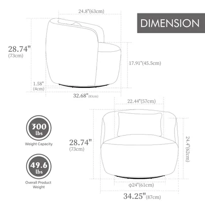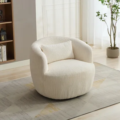 - 銆怋UILT TO LAST銆?: Constructed of premium corduroy fabric with meticulous attention to detail, this armchair features a round metal base for durability and stability. Its cushion filled with high-density foam provides superior comfort. The chair seamlessly blends functionality, timeless beauty and comfort.