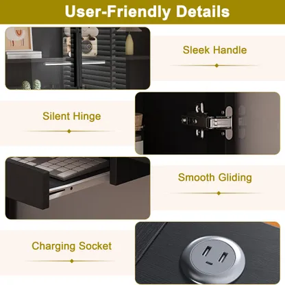 - Integrated Connectivity & Concealed Organization: Features 2 built-in USB ports for convenient device charging and incorporates hidden storage solutions, including a keyboard shelf, three drawers, and under-desk shelves. This keeps essentials like notebooks, chargers, and stationery neatly organized and accessible yet out of sight.
