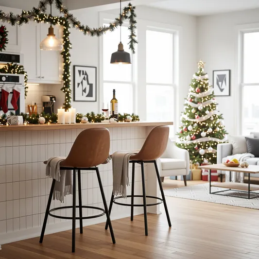 30" Upholstered Bar Stools with Back Bar Chair Set of 2