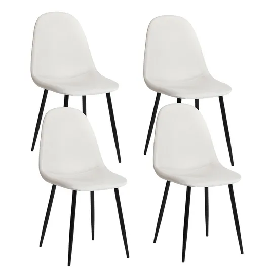 Set of 4 Modern Dining Chairs, Curved Fabric Seats with Wood-Look Metal Legs, Beige Upholstery, Easy Assembly