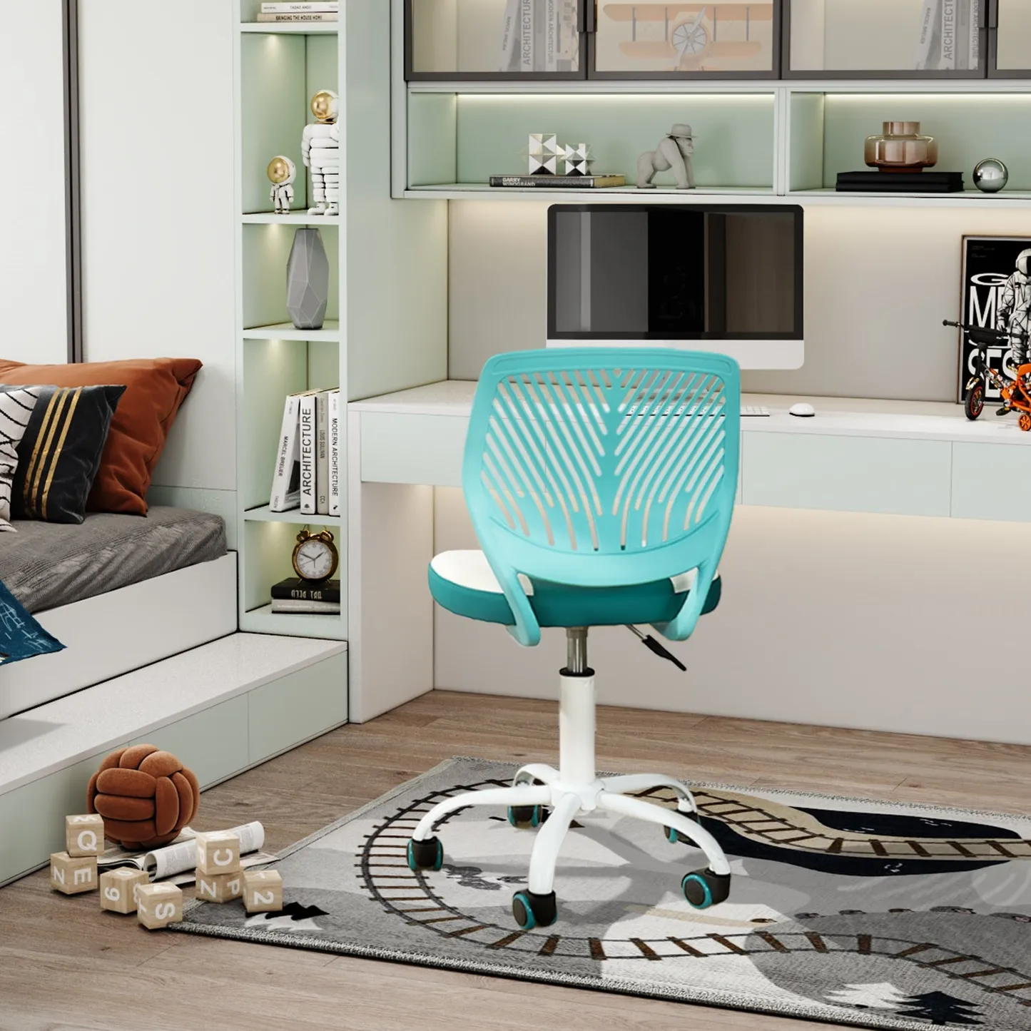 This modern ergonomic chair features a sleek, two-tone design with a comfortable PU leather seat and a stylish plastic backrest. Perfect for home offices or study spaces, offering durability and comfort for all-day use.