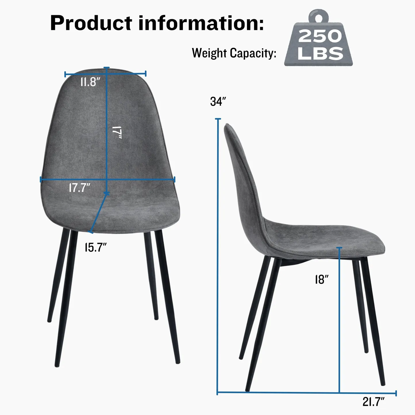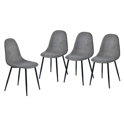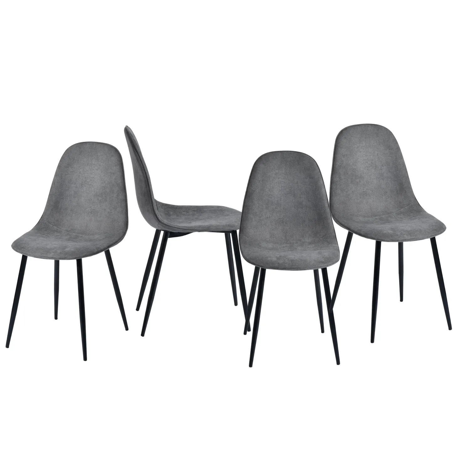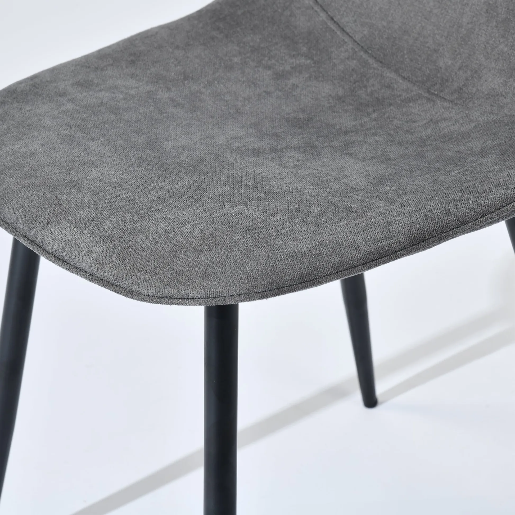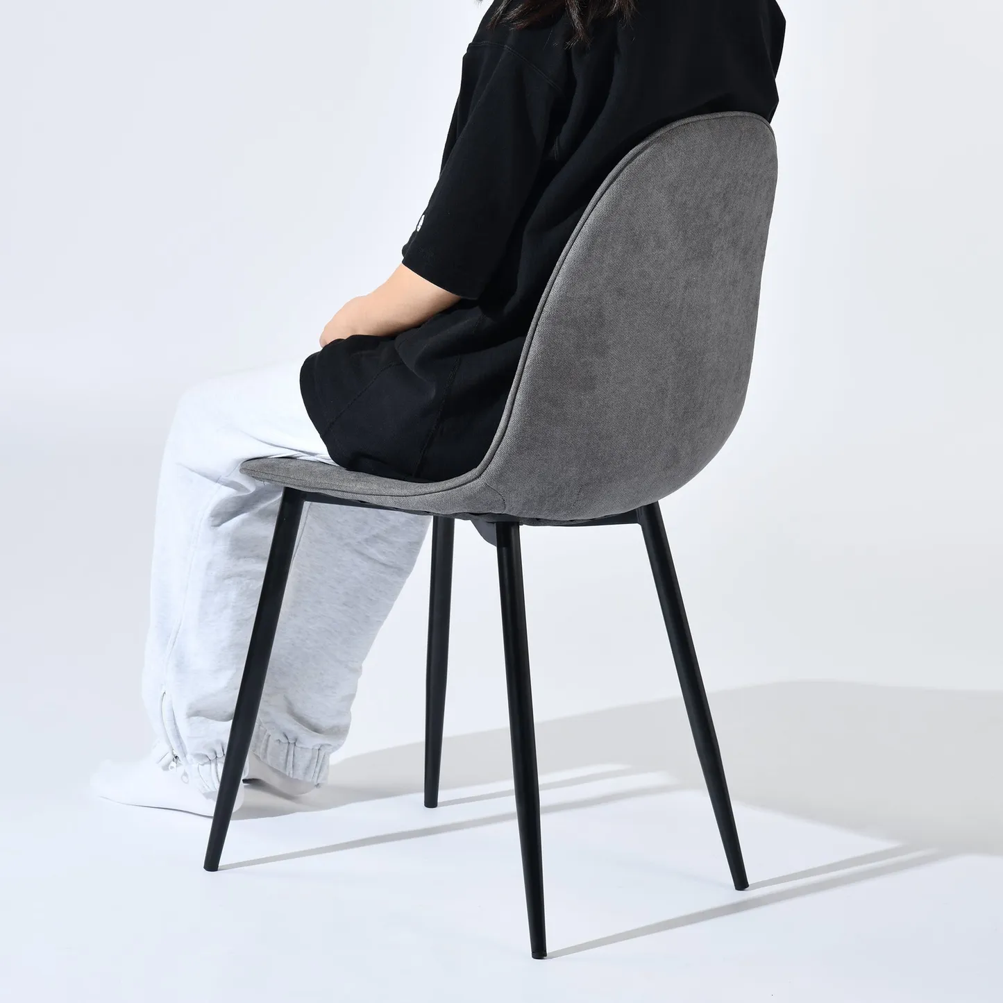 This upholstered dining chair set is designed for living rooms dining rooms kitchens apartments condos offices studios dorms and small homes. The compact molded seat shape provides everyday comfort while the slim tapered legs keep the silhouette light and modern. The grey terry fabric adds a soft textured touch that works with Scandinavian minimalist contemporary and transitional interiors. Perfect for family dining areas study corners breakfast nooks lounge seating or multi purpose rooms where space efficiency matters. The ergonomic backrest supports comfortable sitting during meals conversations or work sessions and the sturdy metal frame provides reliable daily use. Ideal for apartments and shared homes these chairs blend durability comfort and style in one versatile design.