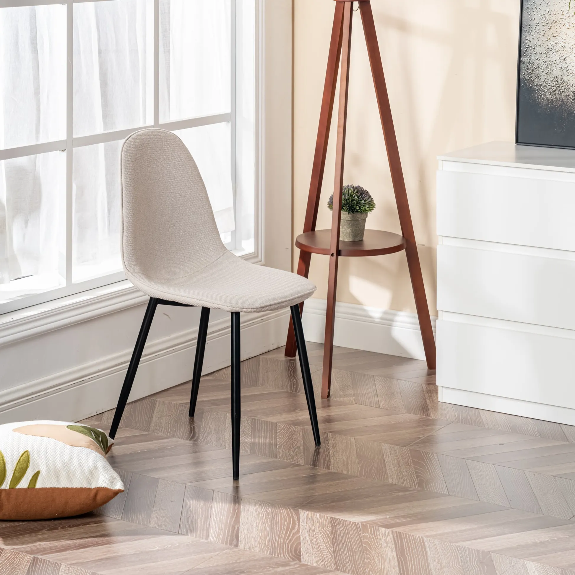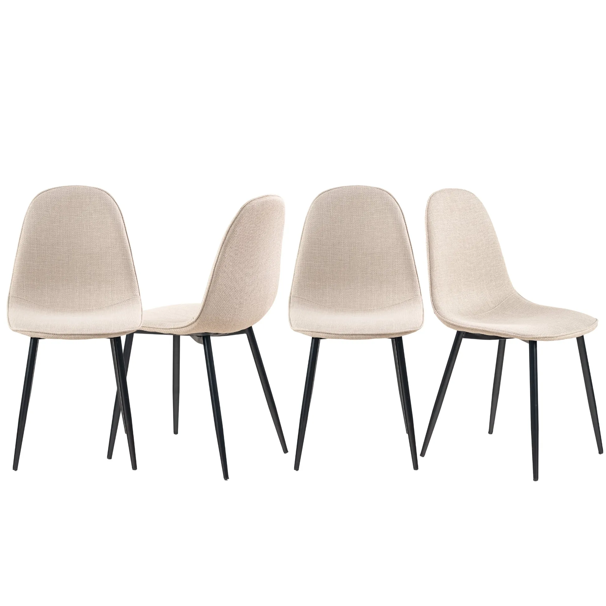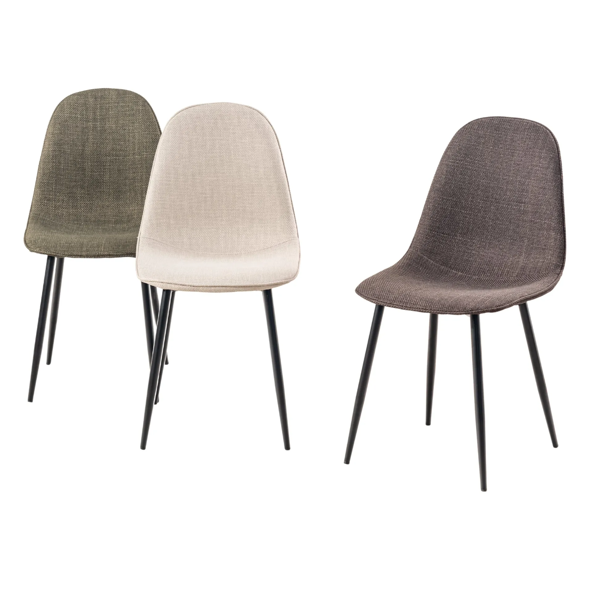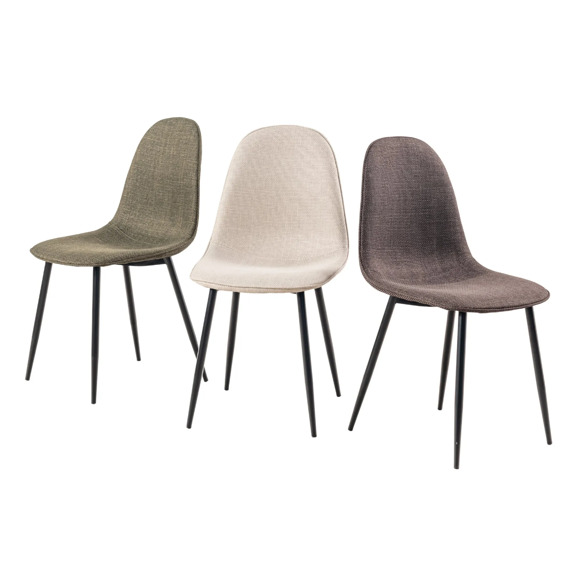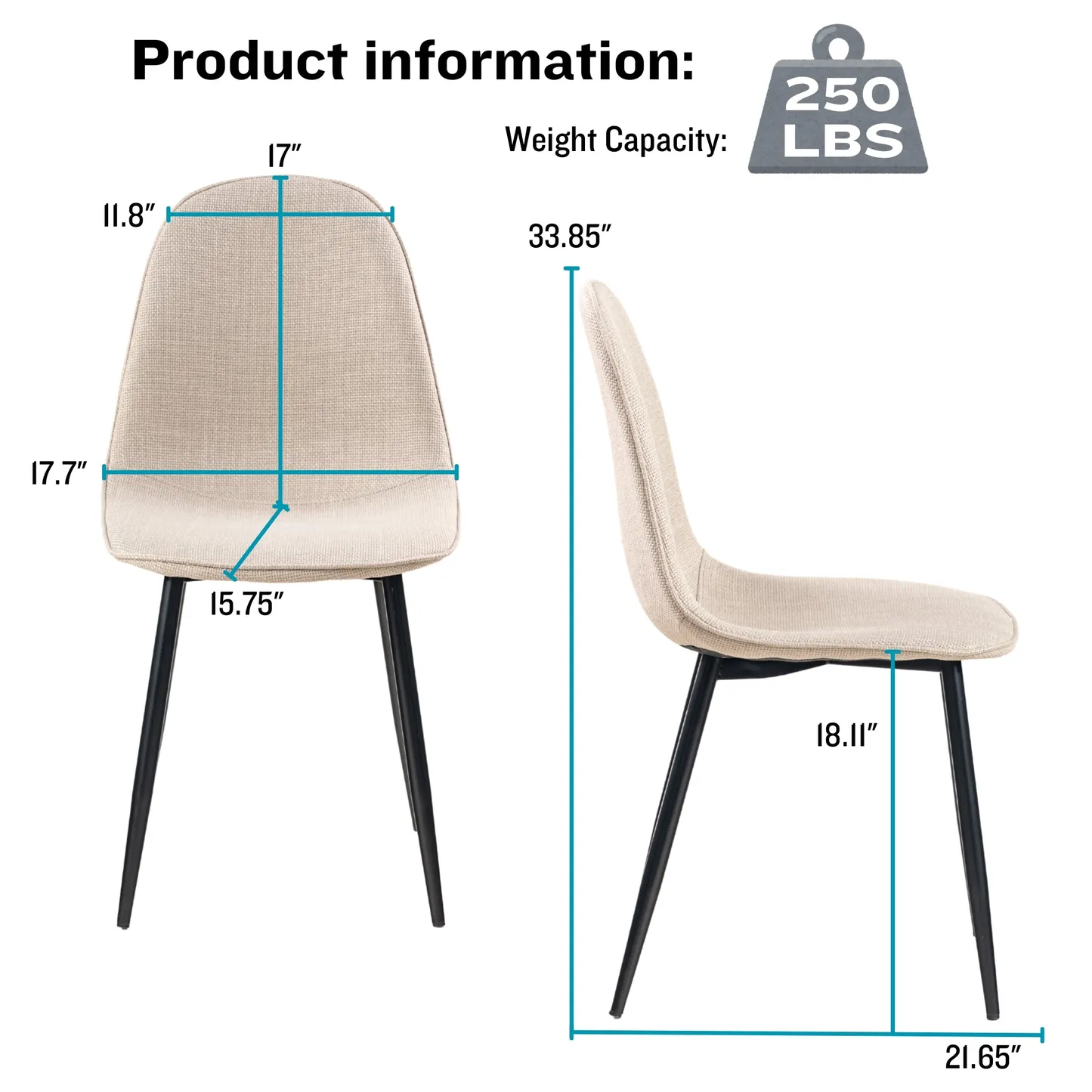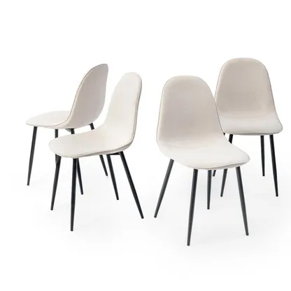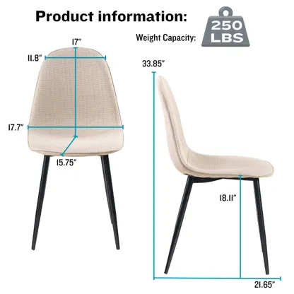 This stylish dining chair features a soft, fabric seat with a sleek black metal frame. Its modern design offers both comfort and durability, making it the perfect addition to your dining room or kitchen. With a weight capacity of 250 lbs, this chair provides long-lasting support for casual dining or extra seating.