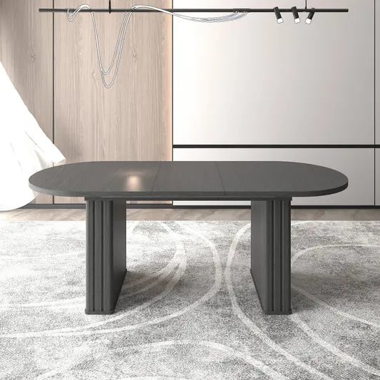 Modern Oval Wood Dining Table with Double Column Base