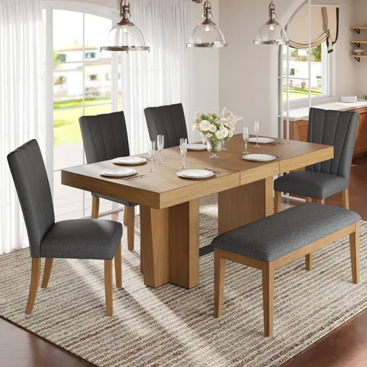78" Farmhouse Wood Extendable Dining Table Set with Bench