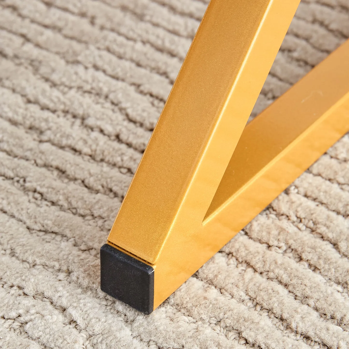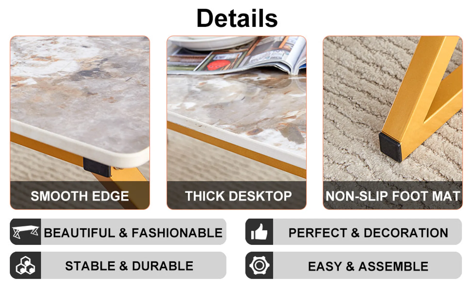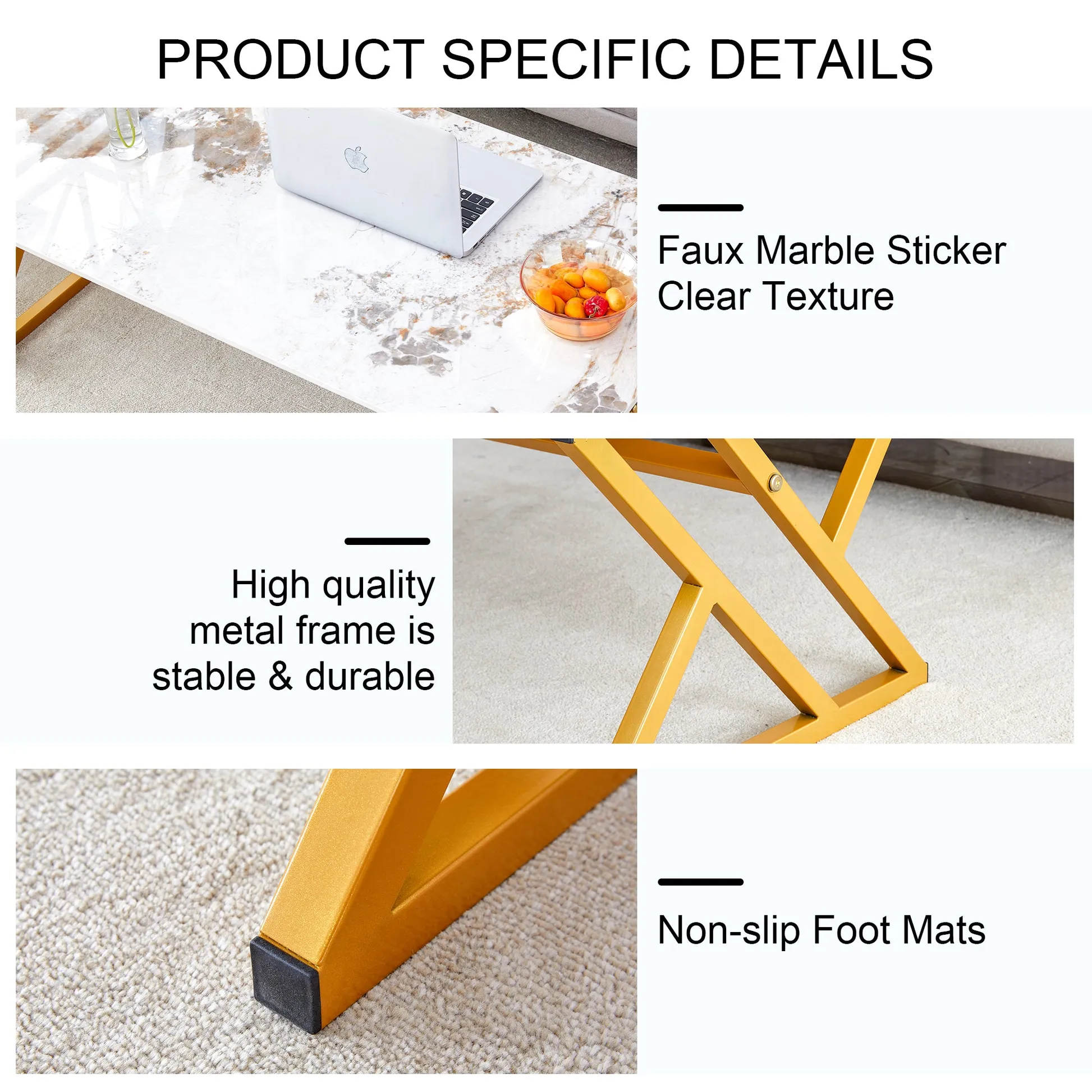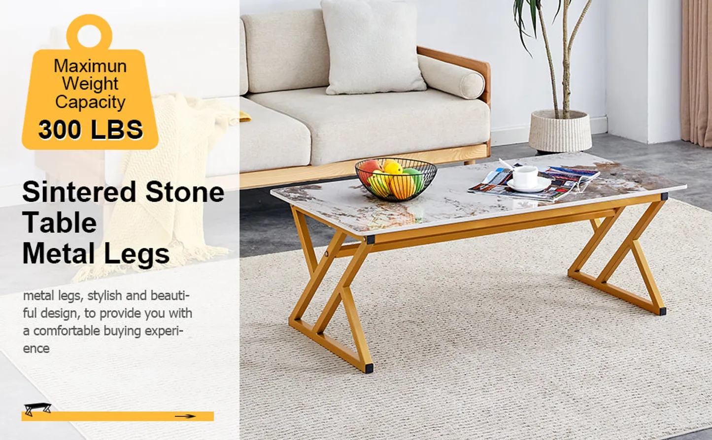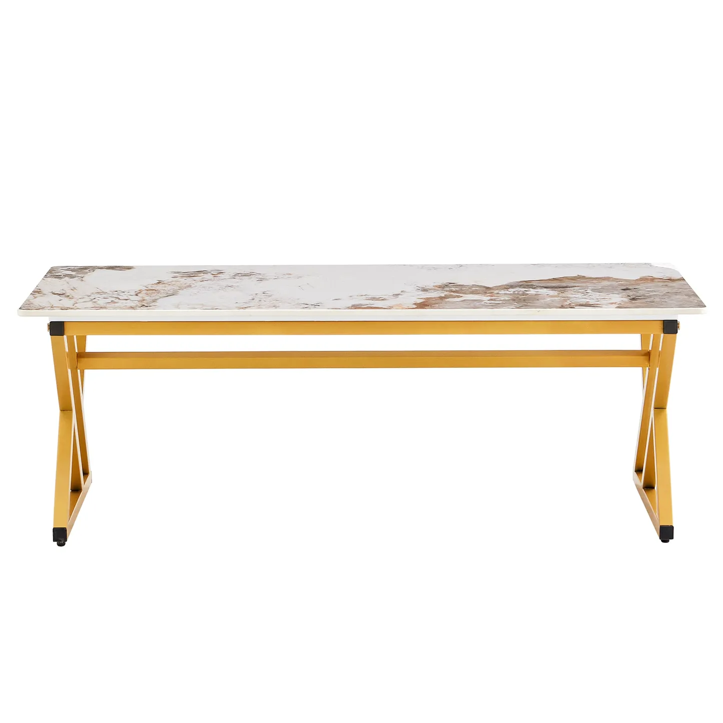 A refined balance of luxury and minimalism. The Alora Coffee Table pairs a natural marble-effect stone top with a golden metal base to create an elegant centerpiece for modern living spaces.