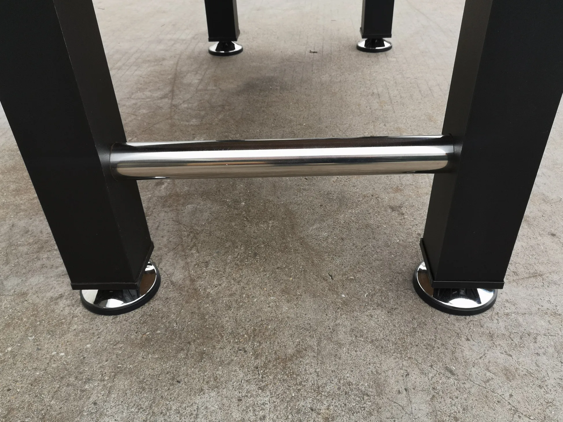 Table Size:54.5'L x 29.3'W x 33.9 'H , Play field:46.1'x26.8 ', Side Panel:(5/8'+1/2')MDF With Black PVC, End Panel:1/2'MDF With Black PVC, Playfield:3/8'MDF With PVC , Leg:3.7'x3.7'x3/8'MDF With PVC, Leg Leveler:脴4.8' plastic with Chromium , Play Bar:桅5/8 Hollow Steel with,Chromium, Accessories:4 pcs ball, Carton Size:57.5'Lx33.9'Wx6.9 'H, N.W./G.W.: 45/50KGS.