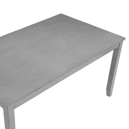 The Baikal 6-piece dining set features a spacious rectangular table, four upholstered chairs, and a matching bench, all in a modern grey finish. Crafted from solid acacia wood and MDF, this set combines durability, comfort, and timeless style for family dining or entertaining guests.