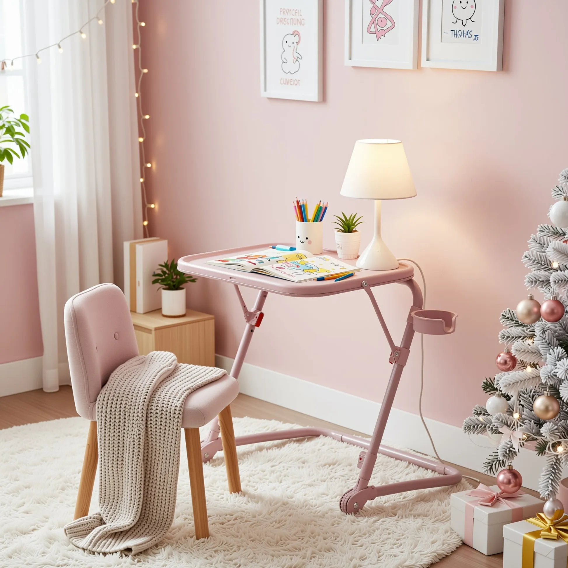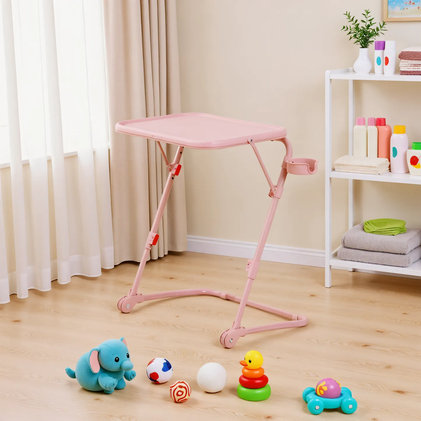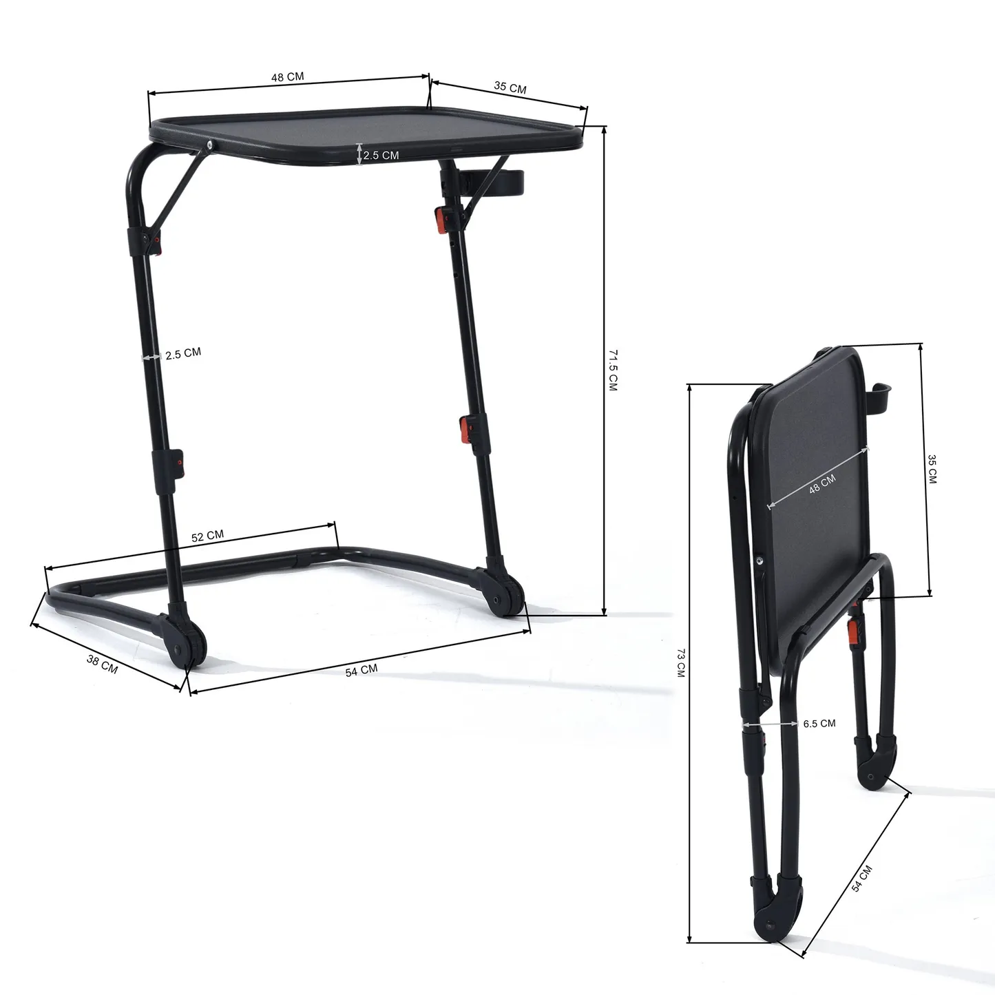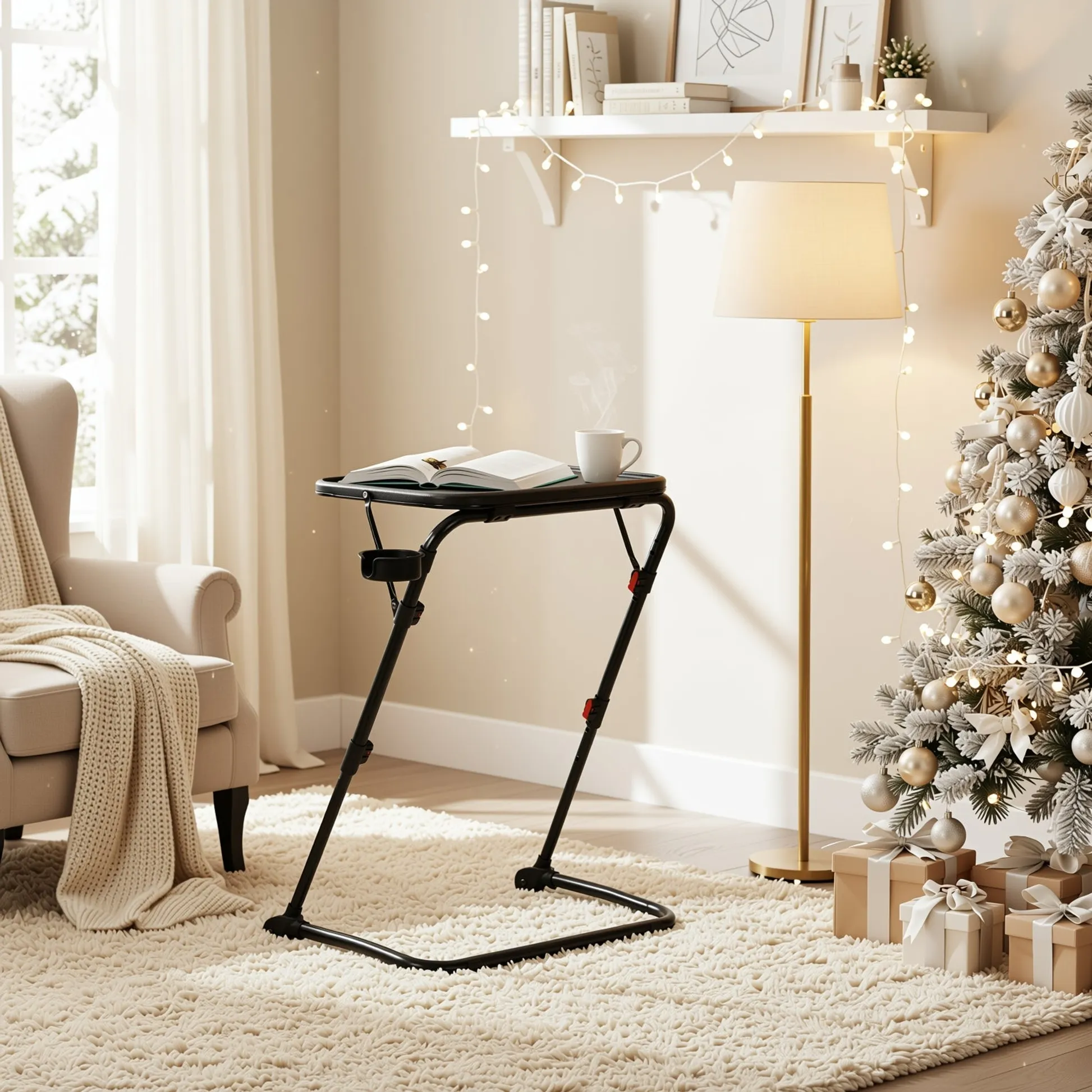 Compact yet versatile, this foldable adjustable tray table is your go-to solution for working, snacking, or crafting anywhere in the home. Lightweight, height-adjustable, and equipped with a built-in cup holder.