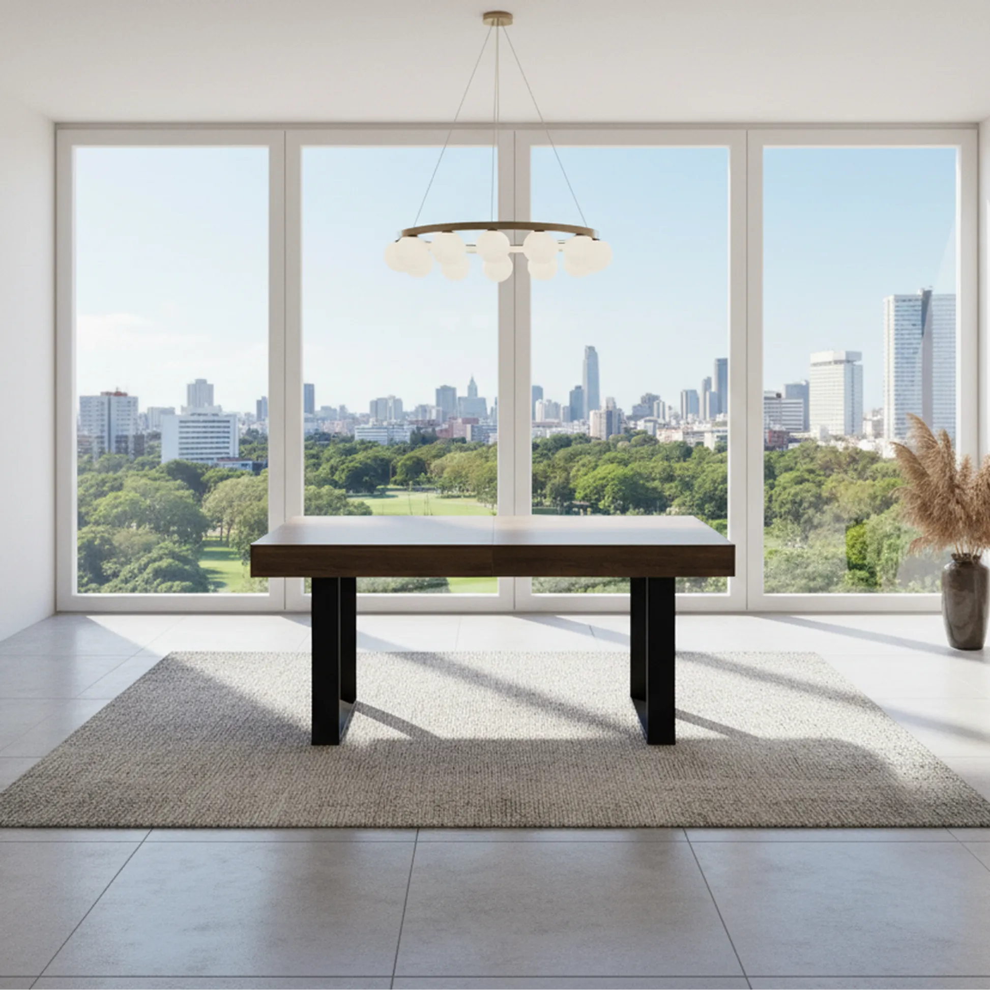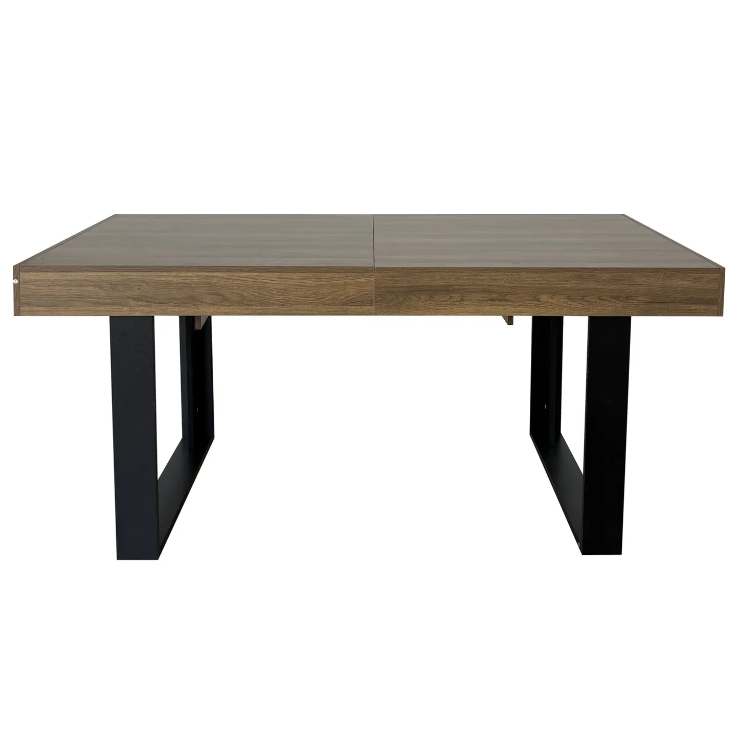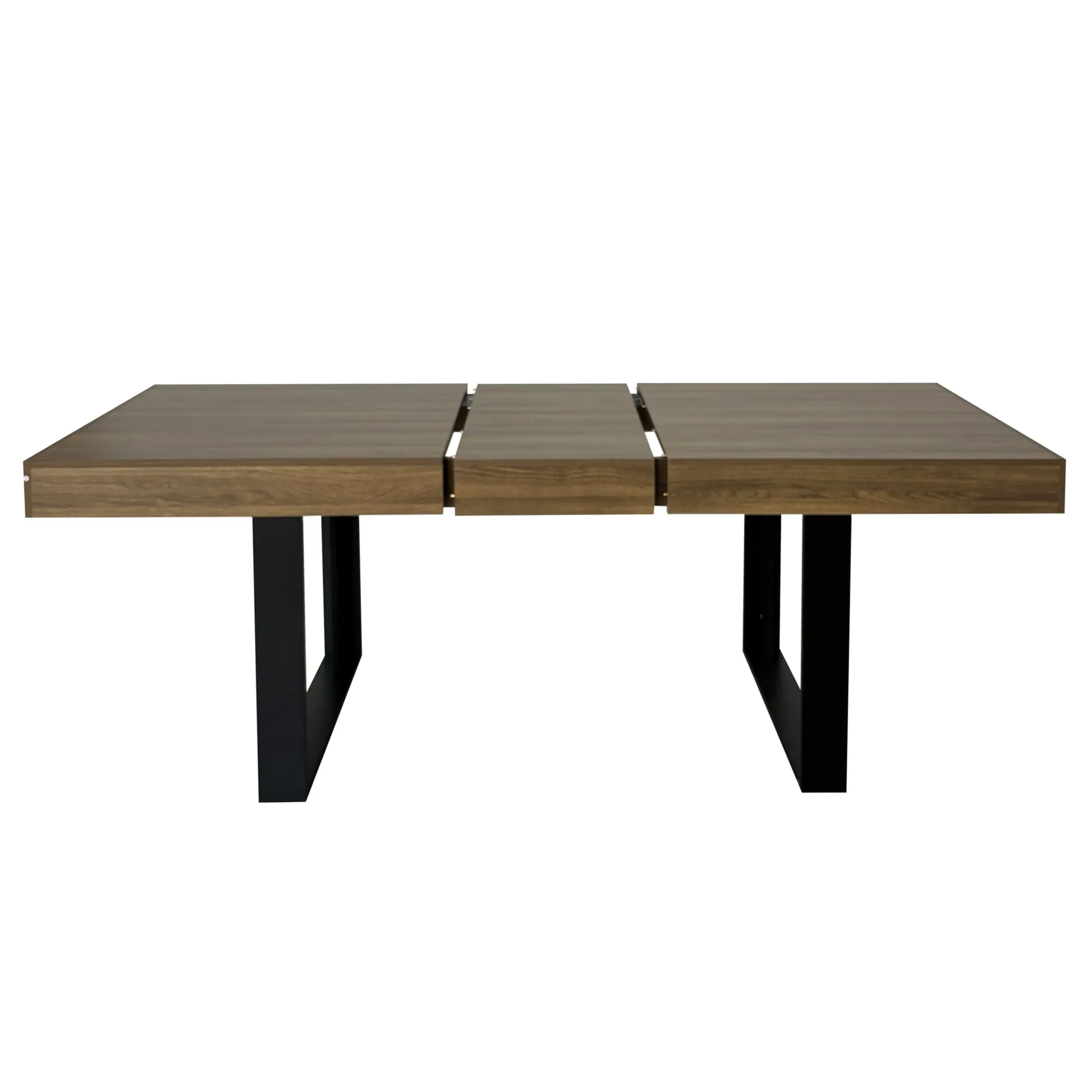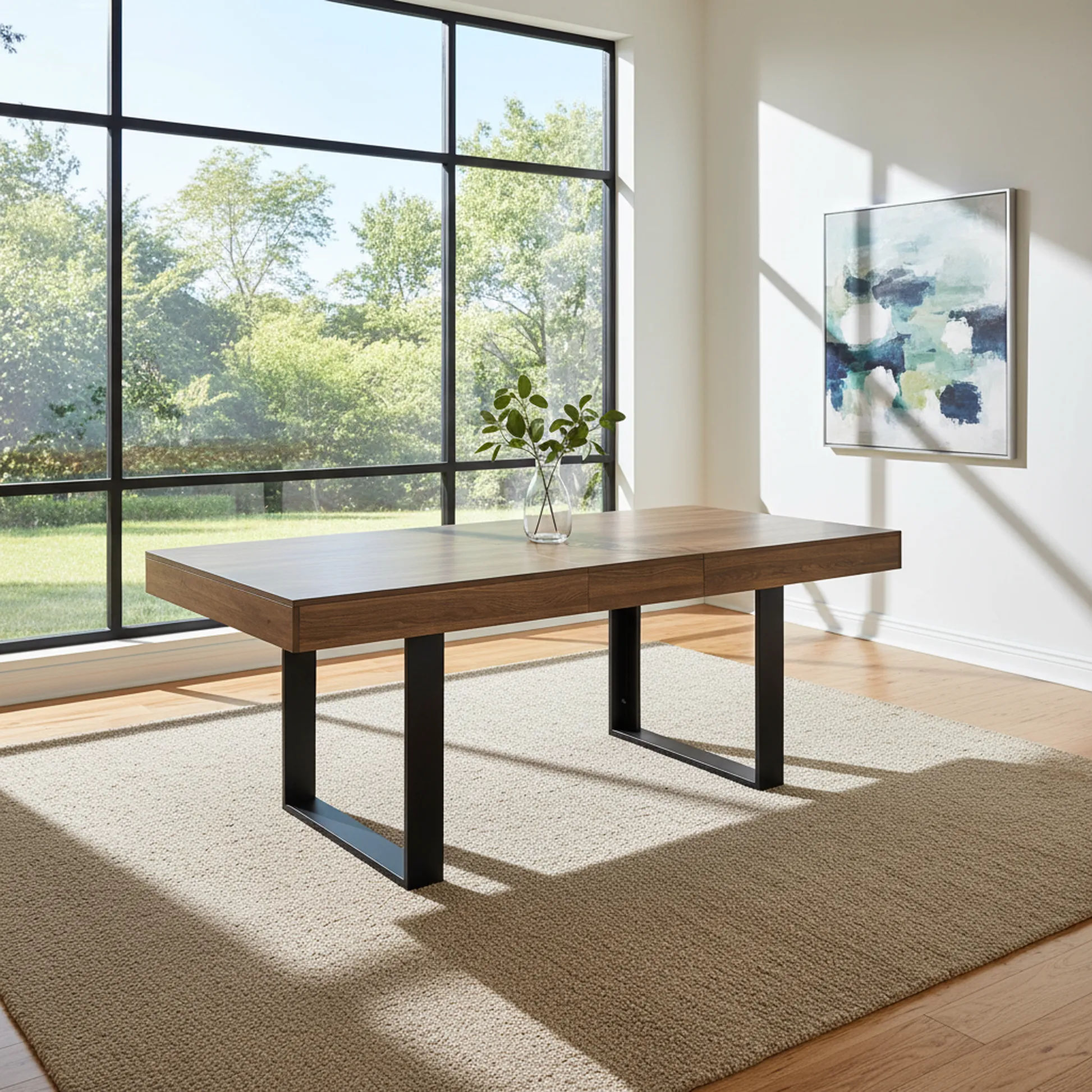 Transform your dining space with this extendable aged-wood table, seating 6-10. Modern black base, robust build, and easy extension make it perfect for gatherings.
