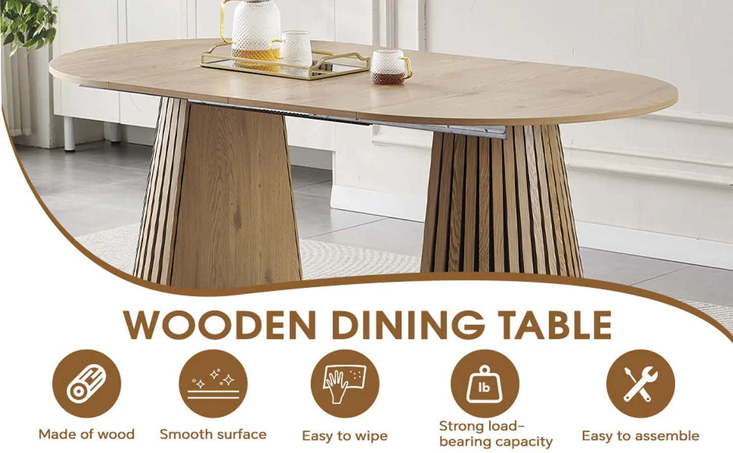 - 銆怓ashionable and beautiful design銆?: An elegant oval tabletop paired with simple slatted table legs. Classic design blends seamlessly with modern North American style. The smooth and safe edges add a touch of refinement to the home.