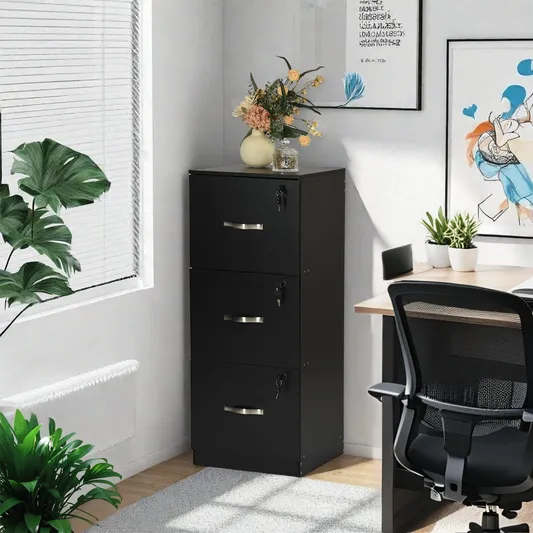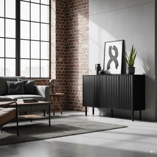 Black Modern Wood Storage Cabinet with Drawers and Shelves